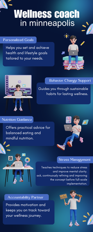 Take a proactive step toward your health goals with a professional Wellness Coach in Minneapolis. Our coaches provide one-on-one guidance on nutrition, exercise, stress management, and habit formation. By tailoring strategies to your unique needs and preferences, we empower you to make sustainable lifestyle changes that promote long-term vitality and happiness. Invest in yourself and experience the benefits of expert support.